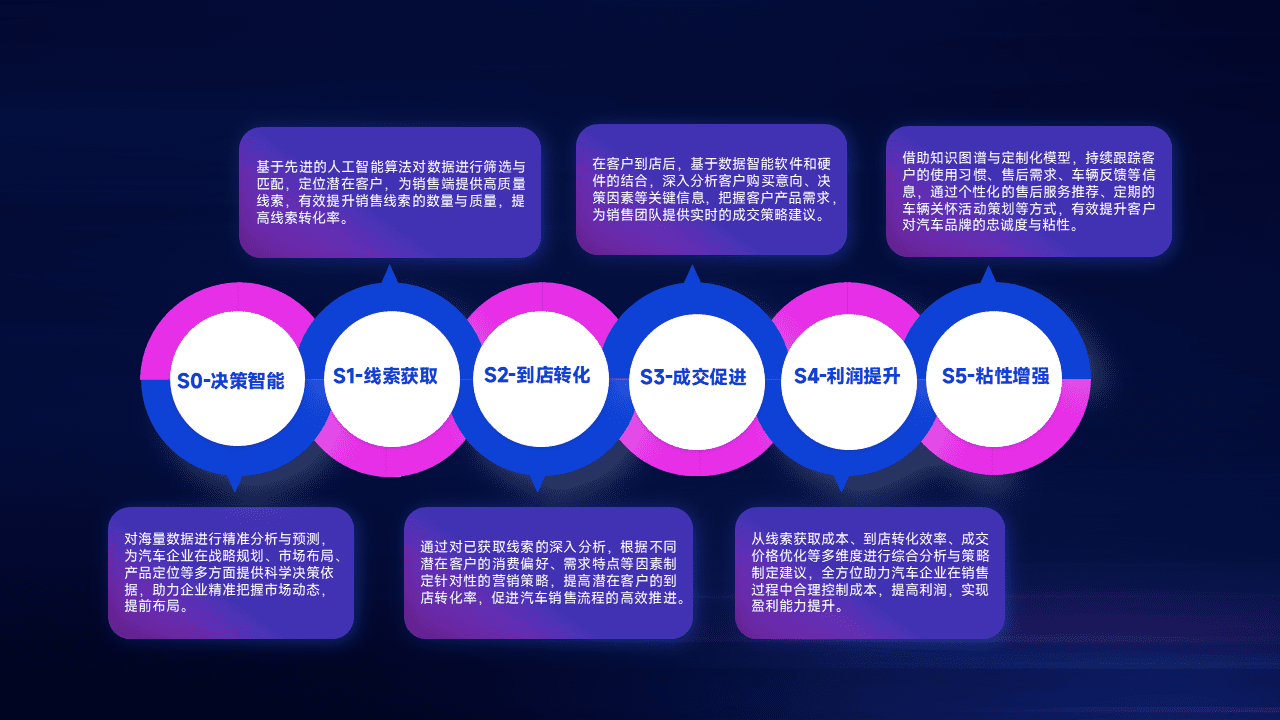 基于销售转化漏斗的薄弱环节,,,,为客户提供数据+模型+运营的智能应用,,,,实现销售业绩的提升;推动线索管理全链路的精细化管理和运营。。。